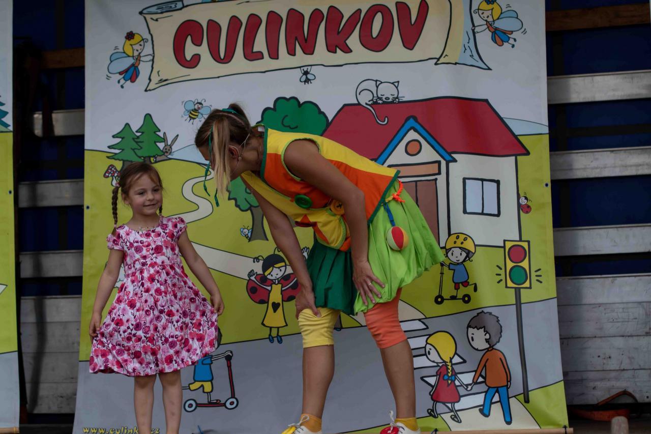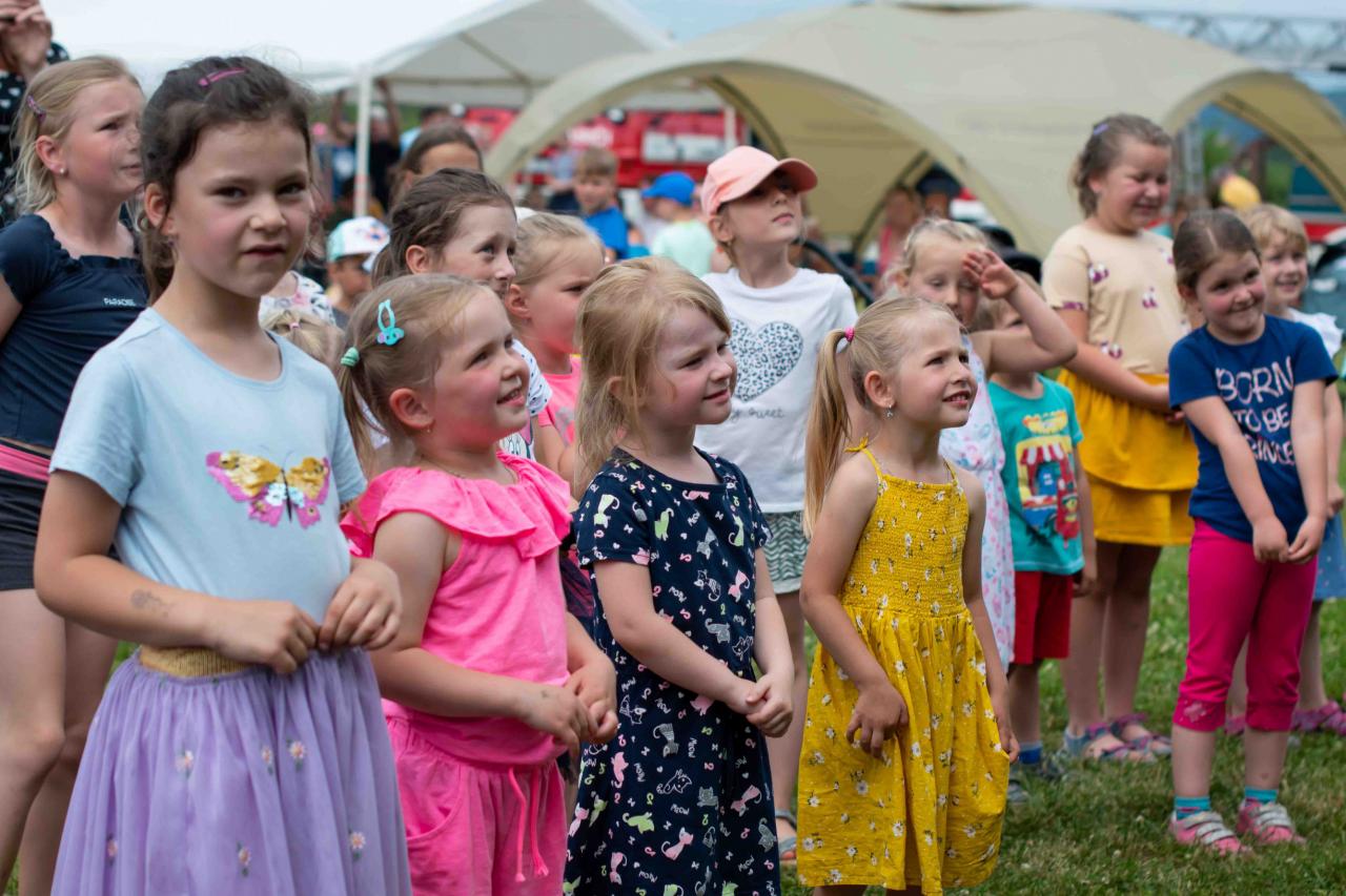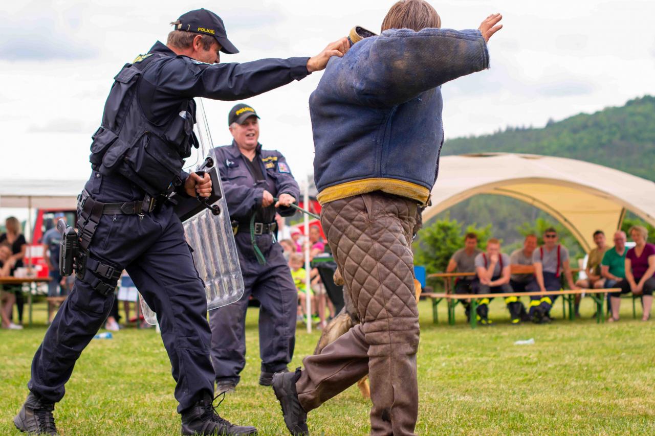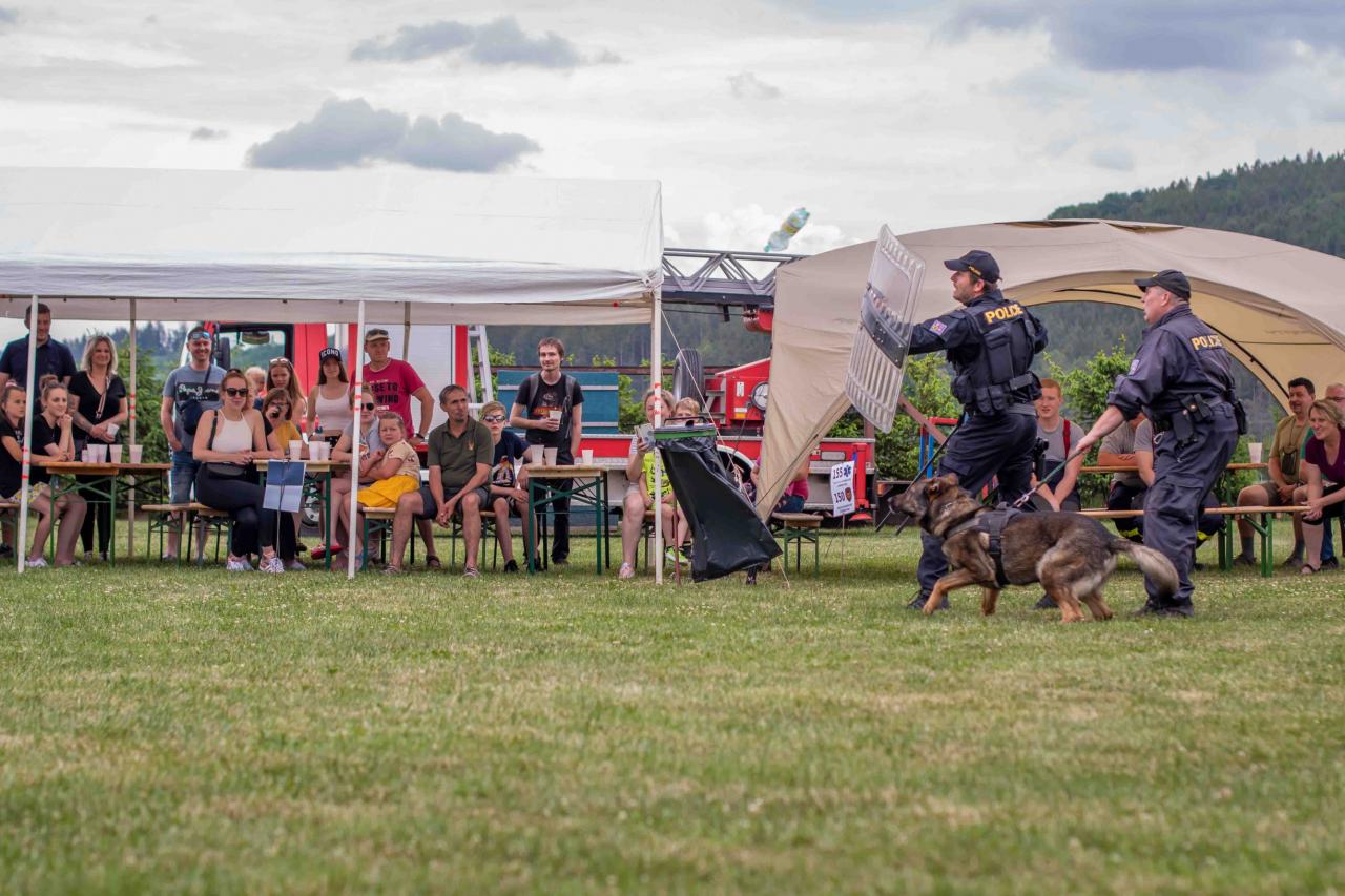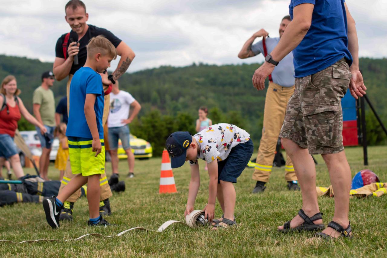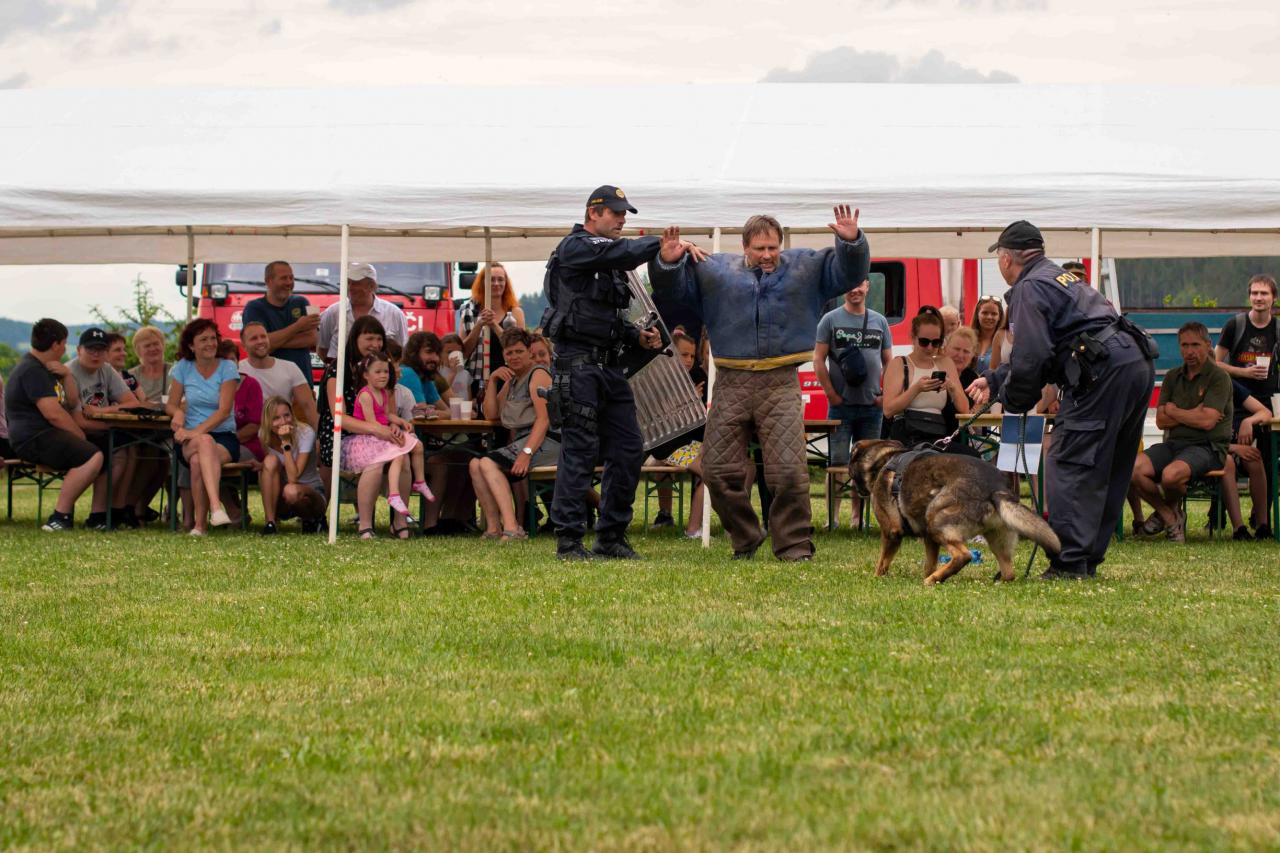 Na děti čekalo vystoupení oblíbené Culinky, skákací hrad, soutěže, ukázka zásahu policejního psovoda i seskok parašutistů přímo do areálu cvičáku. Dále si děti mohly prohlédnout zásahové auto Hasičského záchranného sboru Plzeňského kraje z požární stanice Staňkov, od členů Zdravotnické záchranné služby Plzeňského kraje se jim dostalo poučení, jak se zachovat v případě, že by se dostaly do situace, kdy by musely někomu poskytnou první pomoc, a dokonce si mohly vyzkoušet disciplíny TFA - požárního sportu, který sice není až tak známý, ale je celosvětově uznávaný. Na závěr pro ně hasiči HZS PK z požární stanice Přeštice připravili obrovskou hromadu pěny. Celé odpoledne bylo doprovázeno reprodukovanou hudbou a jak je vidět z fotografií níže, všichni přítomní si ho náramně užili.