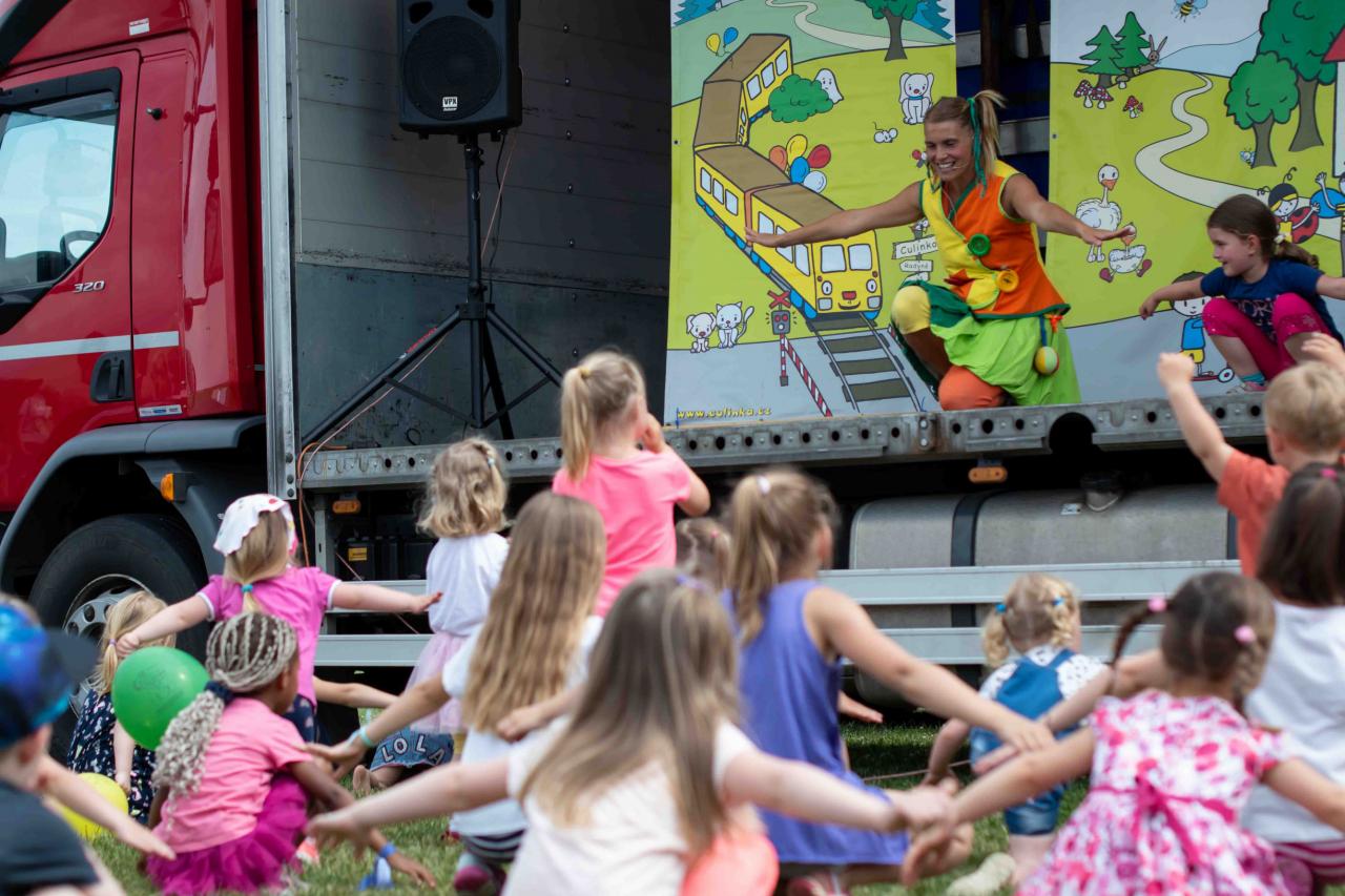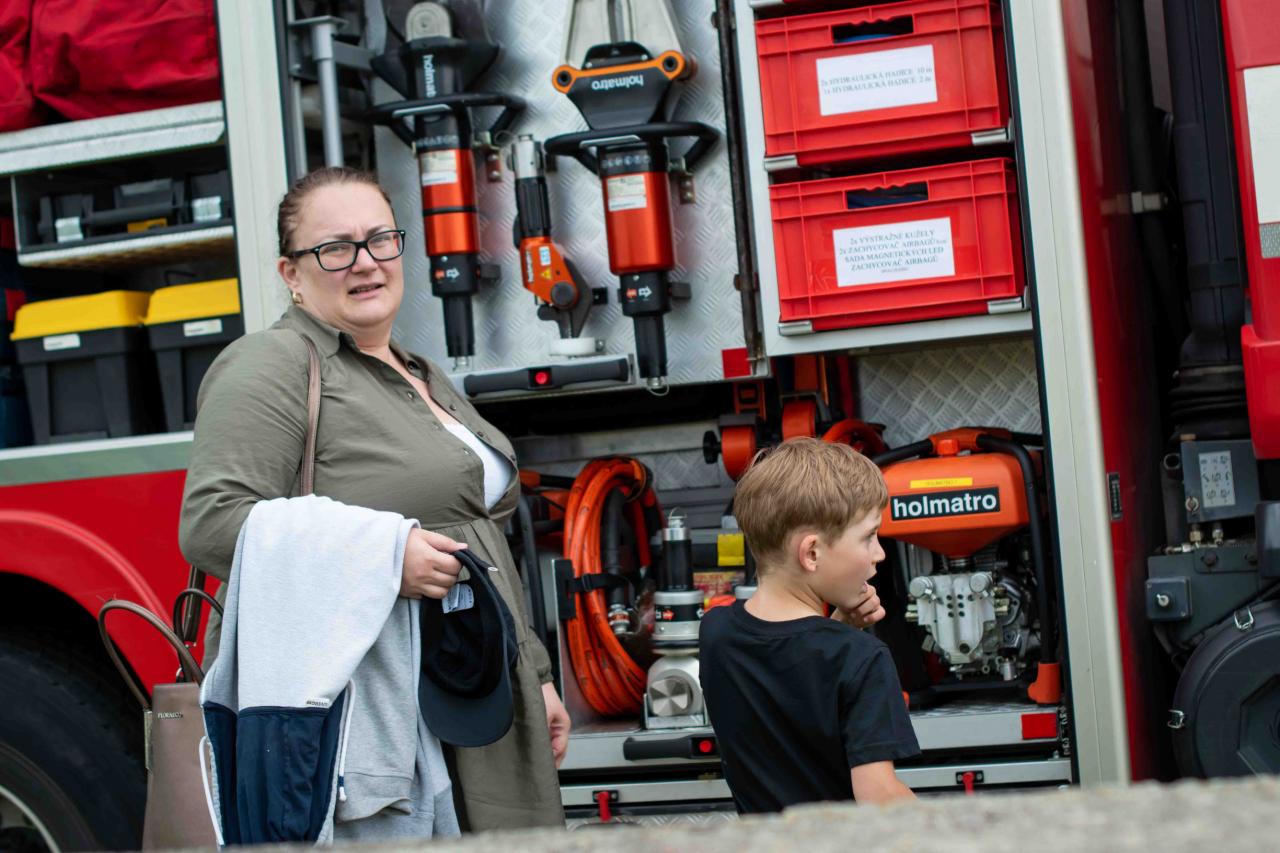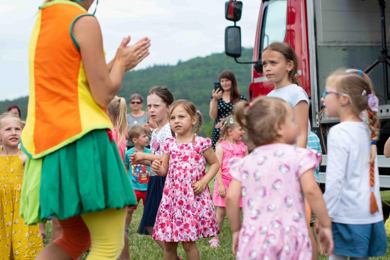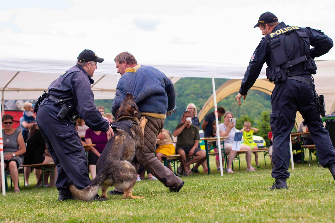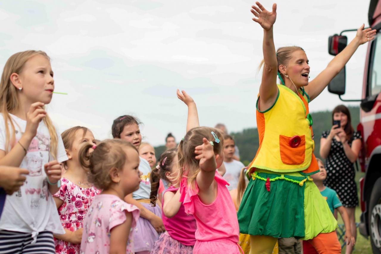 Na děti čekalo vystoupení oblíbené Culinky, skákací hrad, soutěže, ukázka zásahu policejního psovoda i seskok parašutistů přímo do areálu cvičáku. Dále si děti mohly prohlédnout zásahové auto Hasičského záchranného sboru Plzeňského kraje z požární stanice Staňkov, od členů Zdravotnické záchranné služby Plzeňského kraje se jim dostalo poučení, jak se zachovat v případě, že by se dostaly do situace, kdy by musely někomu poskytnou první pomoc, a dokonce si mohly vyzkoušet disciplíny TFA - požárního sportu, který sice není až tak známý, ale je celosvětově uznávaný. Na závěr pro ně hasiči HZS PK z požární stanice Přeštice připravili obrovskou hromadu pěny. Celé odpoledne bylo doprovázeno reprodukovanou hudbou a jak je vidět z fotografií níže, všichni přítomní si ho náramně užili.