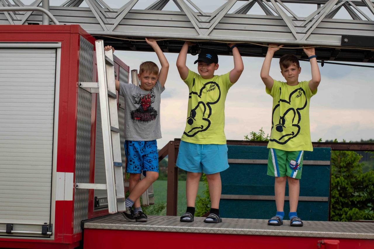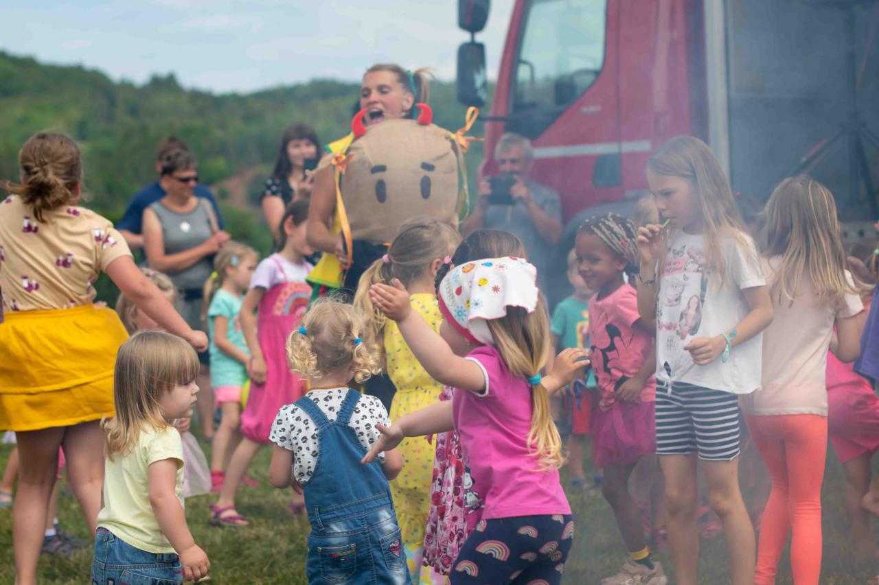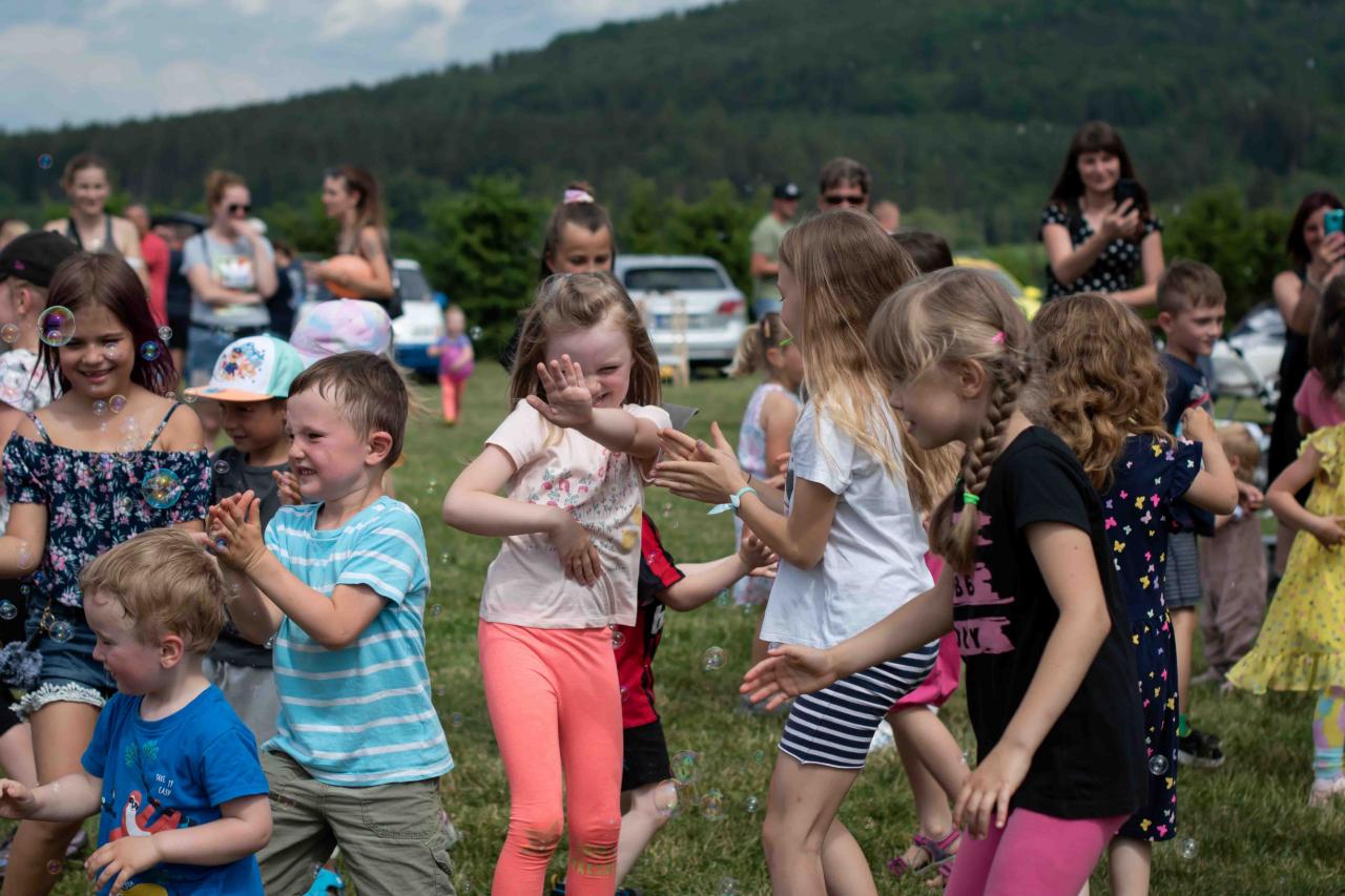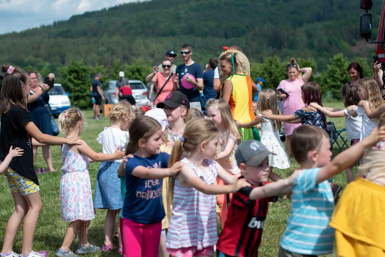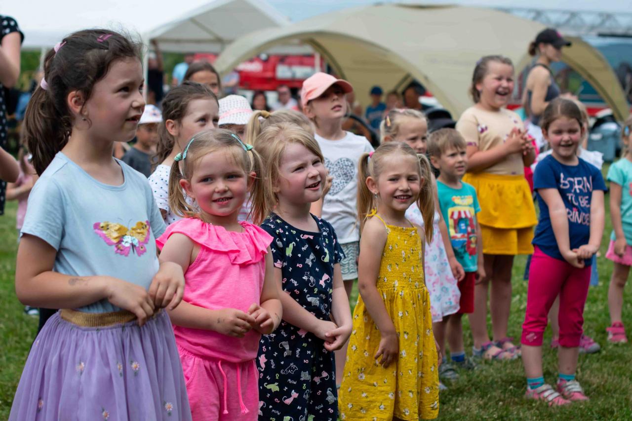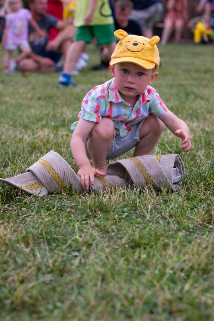 Na děti čekalo vystoupení oblíbené Culinky, skákací hrad, soutěže, ukázka zásahu policejního psovoda i seskok parašutistů přímo do areálu cvičáku. Dále si děti mohly prohlédnout zásahové auto Hasičského záchranného sboru Plzeňského kraje z požární stanice Staňkov, od členů Zdravotnické záchranné služby Plzeňského kraje se jim dostalo poučení, jak se zachovat v případě, že by se dostaly do situace, kdy by musely někomu poskytnou první pomoc, a dokonce si mohly vyzkoušet disciplíny TFA - požárního sportu, který sice není až tak známý, ale je celosvětově uznávaný. Na závěr pro ně hasiči HZS PK z požární stanice Přeštice připravili obrovskou hromadu pěny. Celé odpoledne bylo doprovázeno reprodukovanou hudbou a jak je vidět z fotografií níže, všichni přítomní si ho náramně užili.