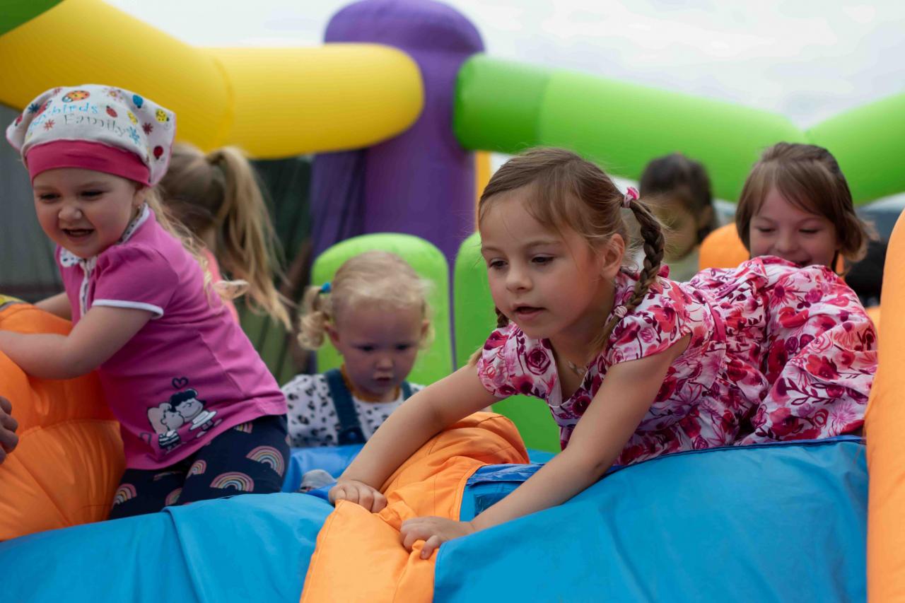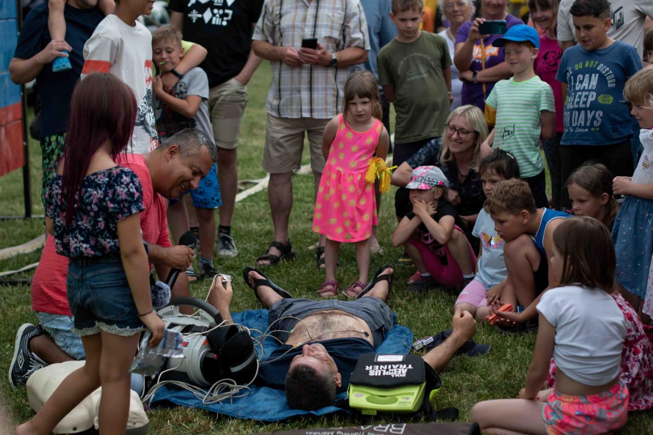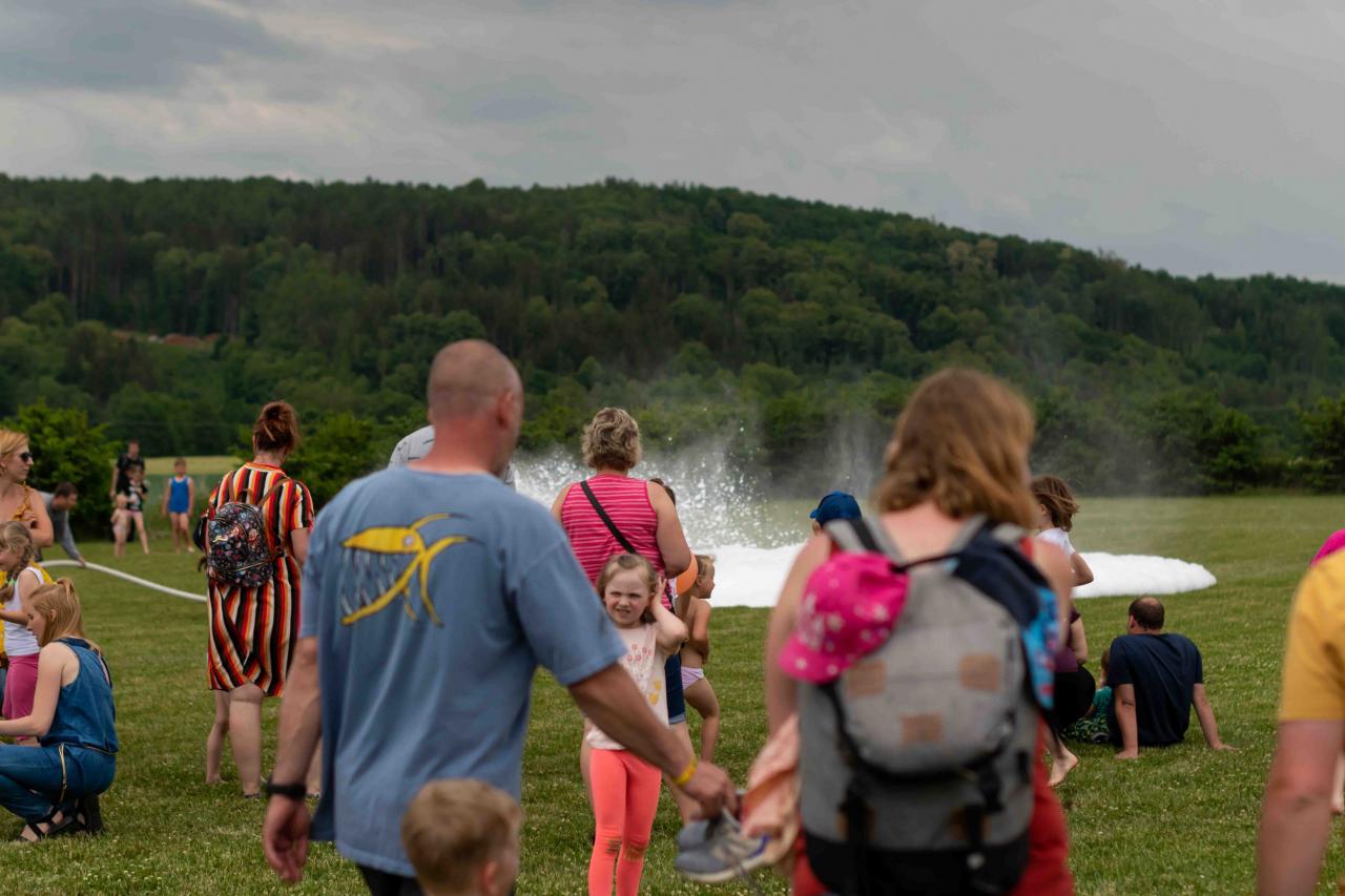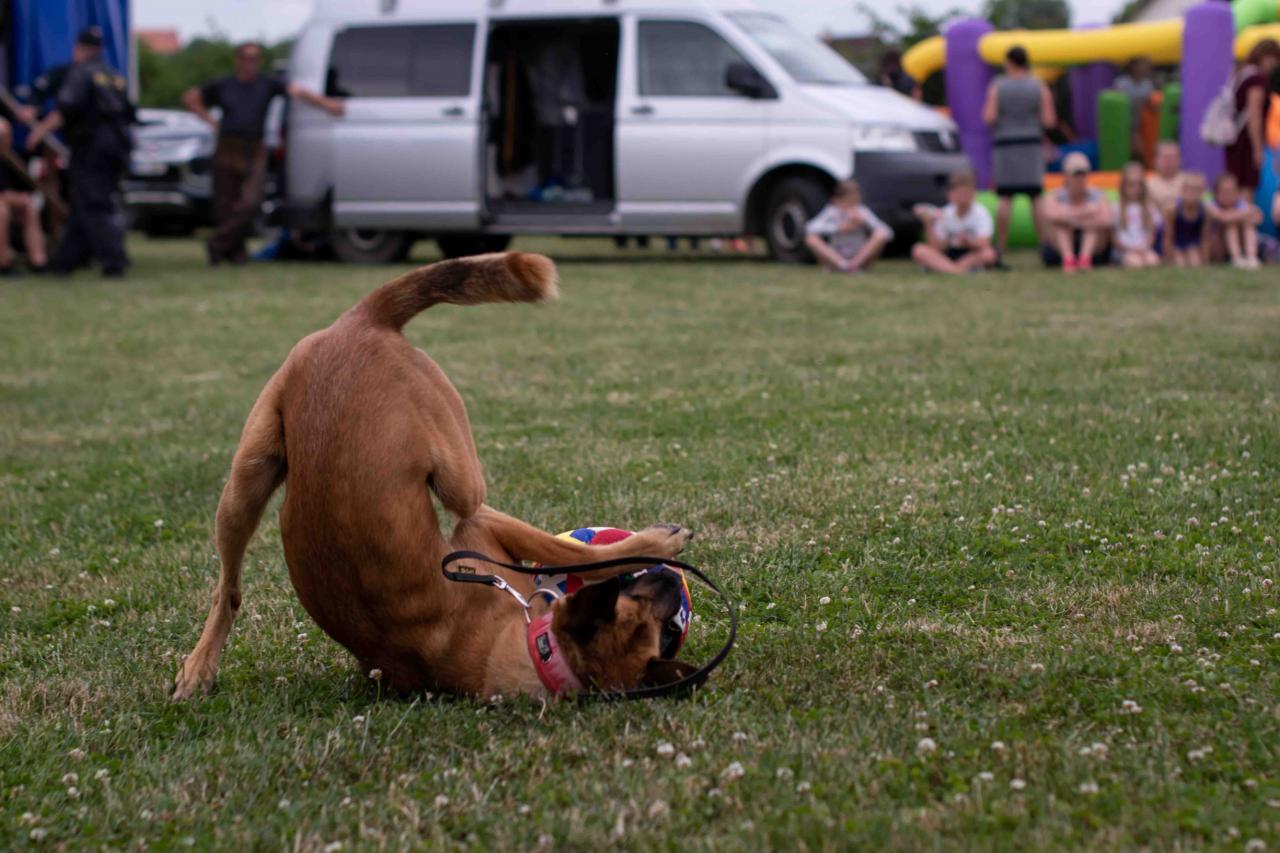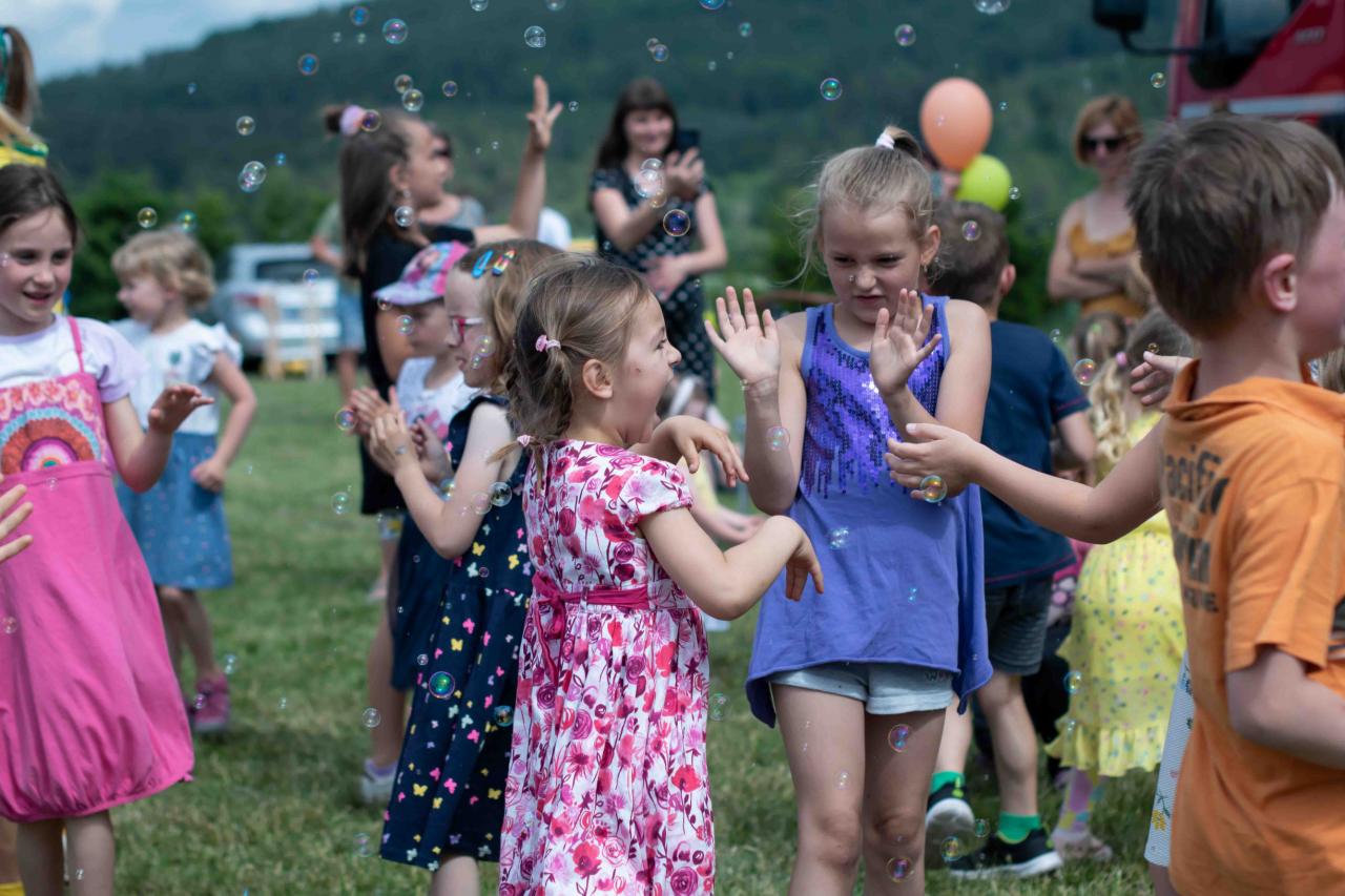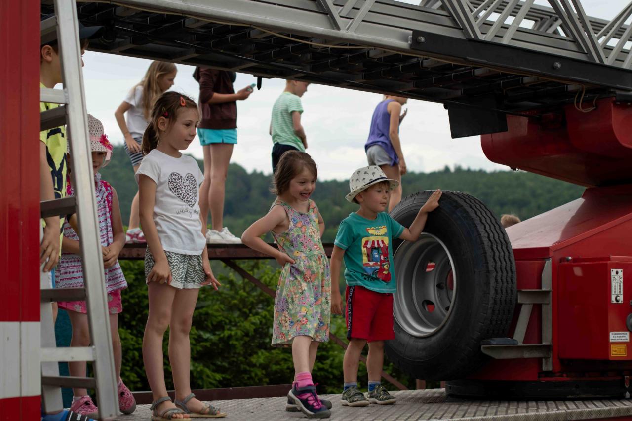 Na děti čekalo vystoupení oblíbené Culinky, skákací hrad, soutěže, ukázka zásahu policejního psovoda i seskok parašutistů přímo do areálu cvičáku. Dále si děti mohly prohlédnout zásahové auto Hasičského záchranného sboru Plzeňského kraje z požární stanice Staňkov, od členů Zdravotnické záchranné služby Plzeňského kraje se jim dostalo poučení, jak se zachovat v případě, že by se dostaly do situace, kdy by musely někomu poskytnou první pomoc, a dokonce si mohly vyzkoušet disciplíny TFA - požárního sportu, který sice není až tak známý, ale je celosvětově uznávaný. Na závěr pro ně hasiči HZS PK z požární stanice Přeštice připravili obrovskou hromadu pěny. Celé odpoledne bylo doprovázeno reprodukovanou hudbou a jak je vidět z fotografií níže, všichni přítomní si ho náramně užili.