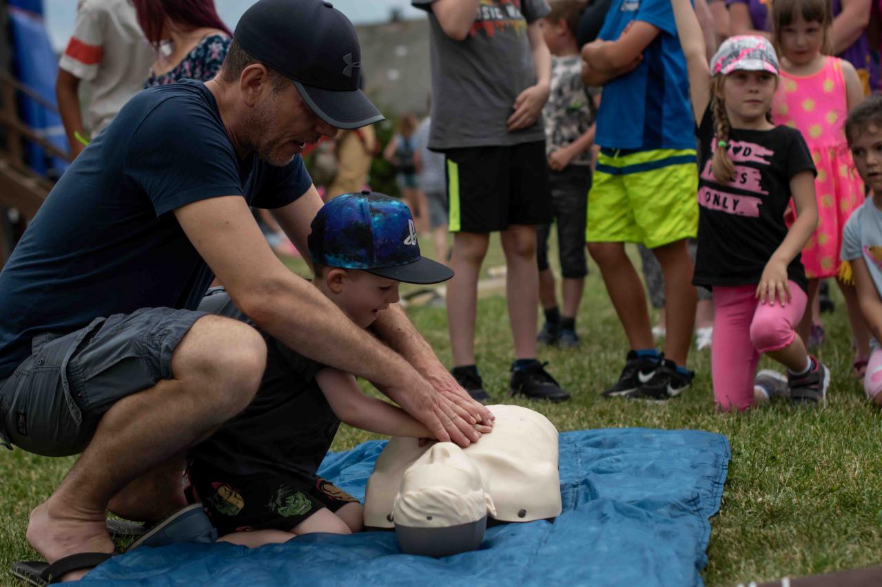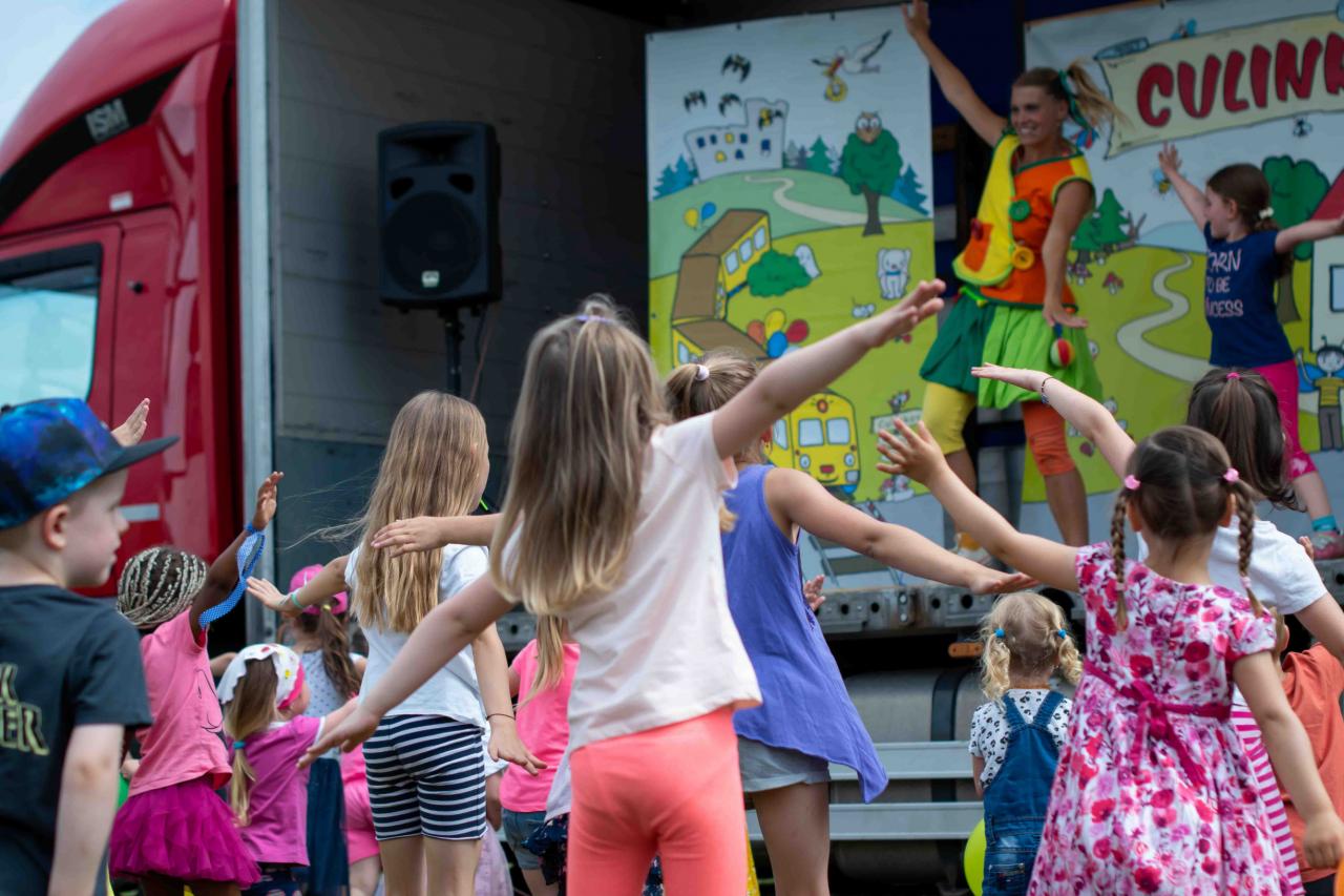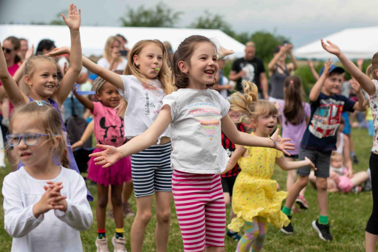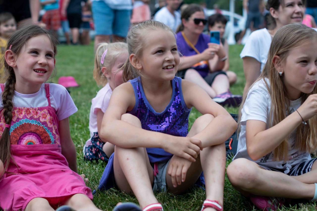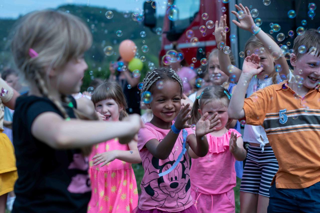 Na děti čekalo vystoupení oblíbené Culinky, skákací hrad, soutěže, ukázka zásahu policejního psovoda i seskok parašutistů přímo do areálu cvičáku. Dále si děti mohly prohlédnout zásahové auto Hasičského záchranného sboru Plzeňského kraje z požární stanice Staňkov, od členů Zdravotnické záchranné služby Plzeňského kraje se jim dostalo poučení, jak se zachovat v případě, že by se dostaly do situace, kdy by musely někomu poskytnou první pomoc, a dokonce si mohly vyzkoušet disciplíny TFA - požárního sportu, který sice není až tak známý, ale je celosvětově uznávaný. Na závěr pro ně hasiči HZS PK z požární stanice Přeštice připravili obrovskou hromadu pěny. Celé odpoledne bylo doprovázeno reprodukovanou hudbou a jak je vidět z fotografií níže, všichni přítomní si ho náramně užili.
