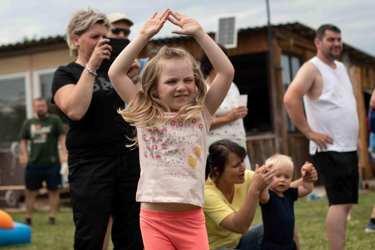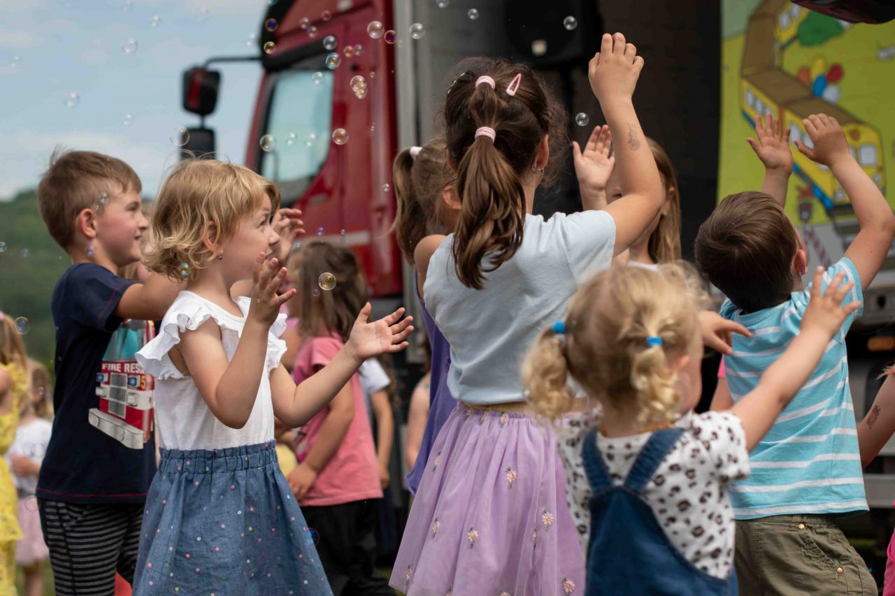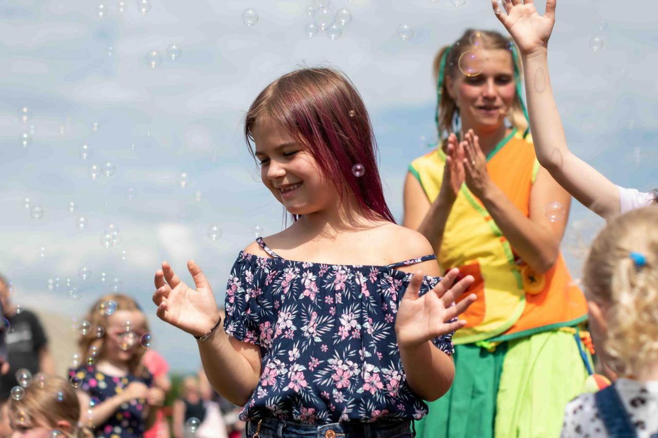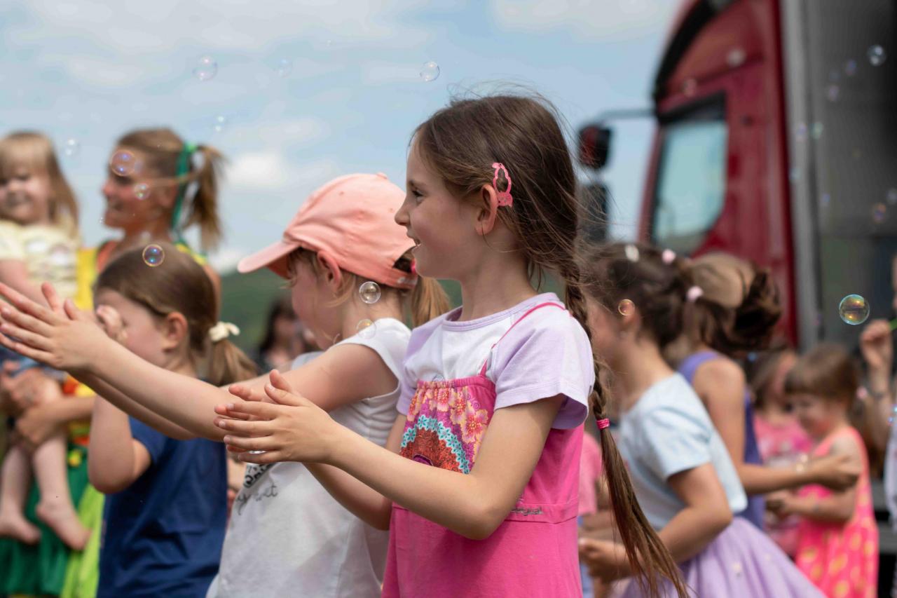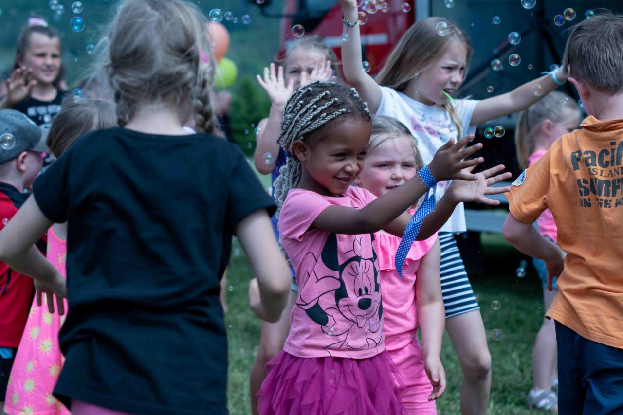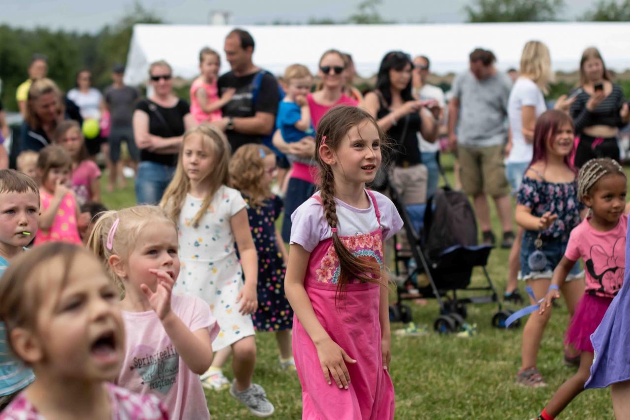 Na děti čekalo vystoupení oblíbené Culinky, skákací hrad, soutěže, ukázka zásahu policejního psovoda i seskok parašutistů přímo do areálu cvičáku. Dále si děti mohly prohlédnout zásahové auto Hasičského záchranného sboru Plzeňského kraje z požární stanice Staňkov, od členů Zdravotnické záchranné služby Plzeňského kraje se jim dostalo poučení, jak se zachovat v případě, že by se dostaly do situace, kdy by musely někomu poskytnou první pomoc, a dokonce si mohly vyzkoušet disciplíny TFA - požárního sportu, který sice není až tak známý, ale je celosvětově uznávaný. Na závěr pro ně hasiči HZS PK z požární stanice Přeštice připravili obrovskou hromadu pěny. Celé odpoledne bylo doprovázeno reprodukovanou hudbou a jak je vidět z fotografií níže, všichni přítomní si ho náramně užili.