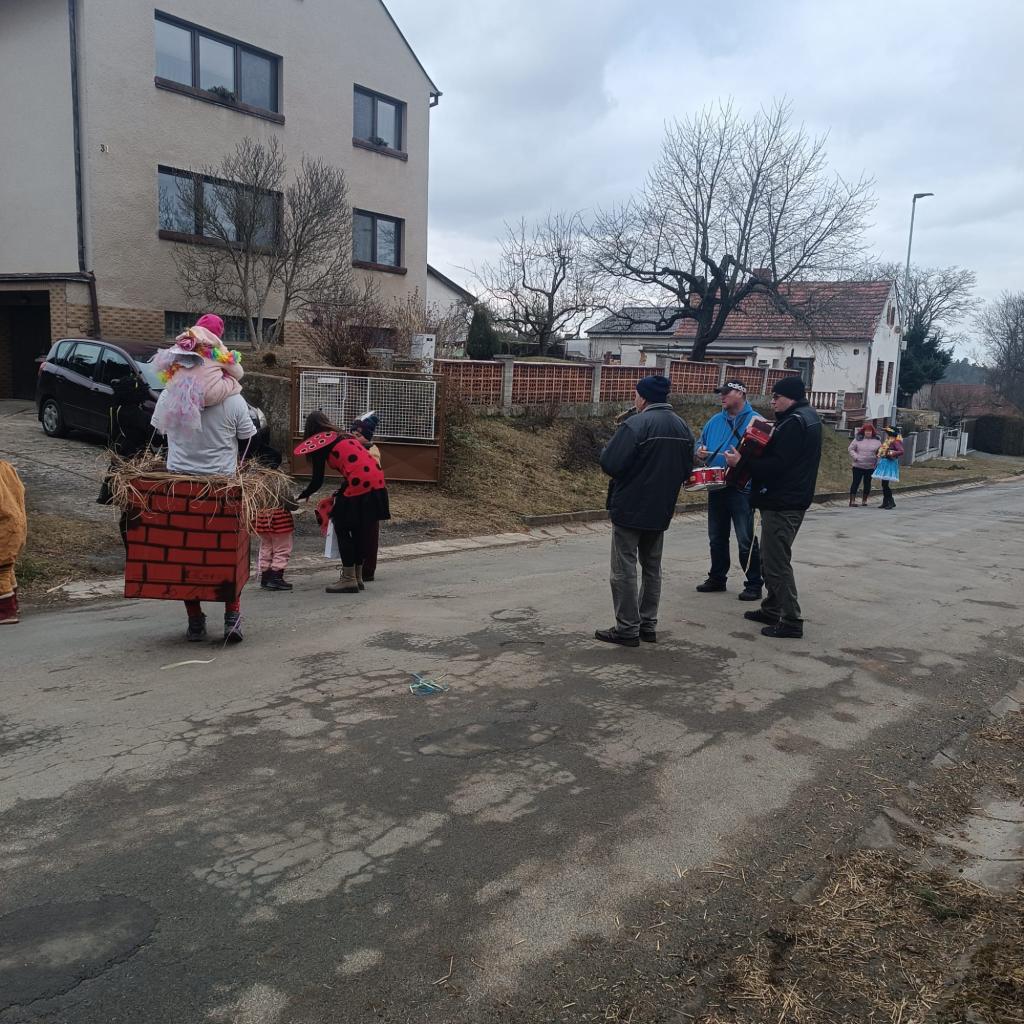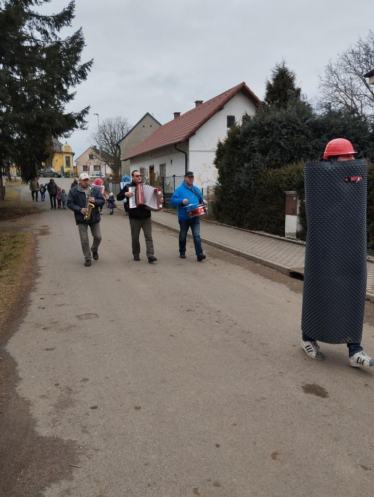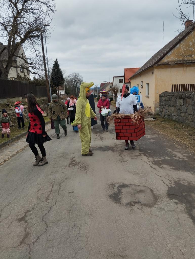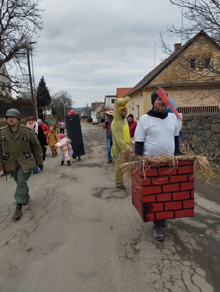 Tradiční masopustní průvod prošel vesnicí v sobotu 1.března. Sice se sešlo z důvodu končících jarních prázdnin méně masek, kolem 18, ale náladu nám to nepokazilo. Průvod doprovodila živá kapela, která poté hrála i v místním hostinci. K občerstvení byl připraven guláš.