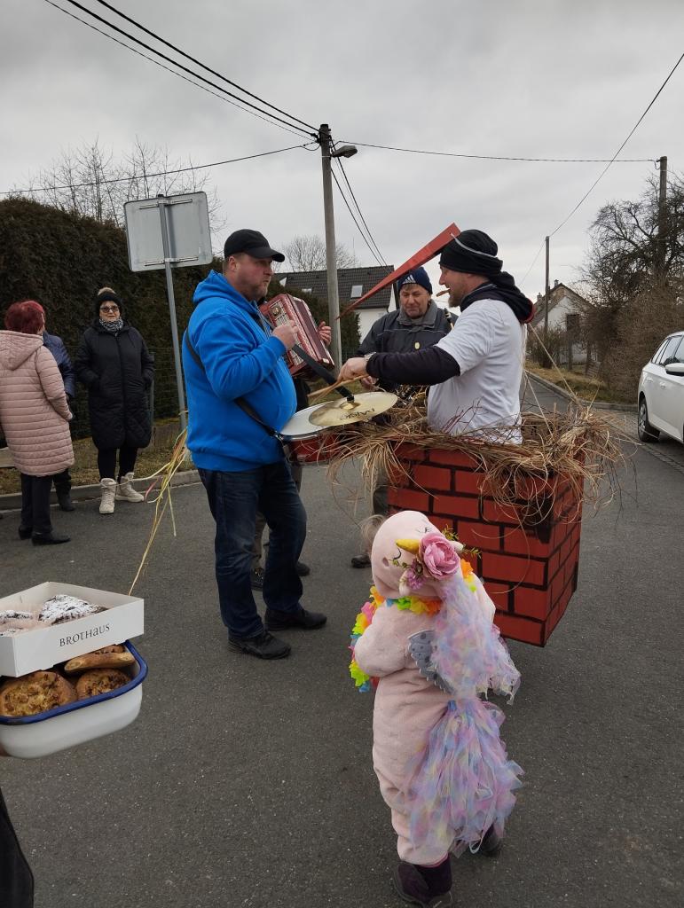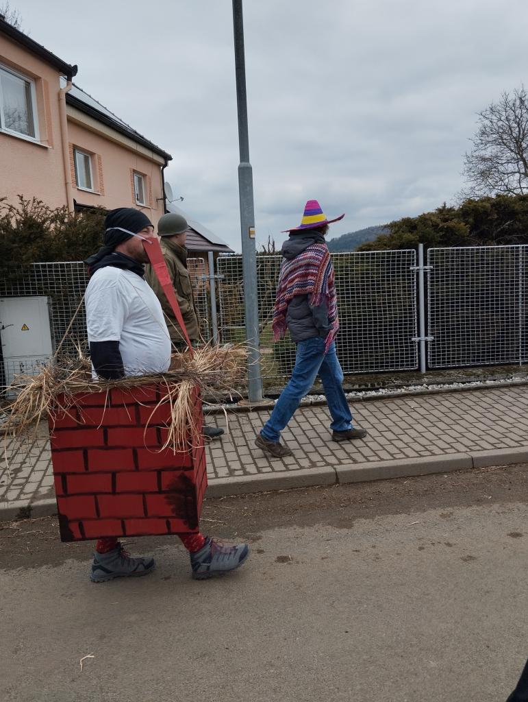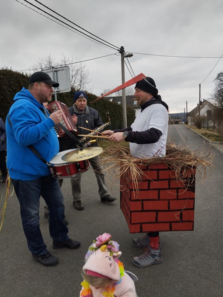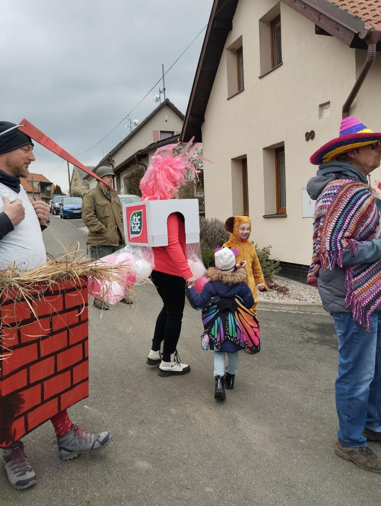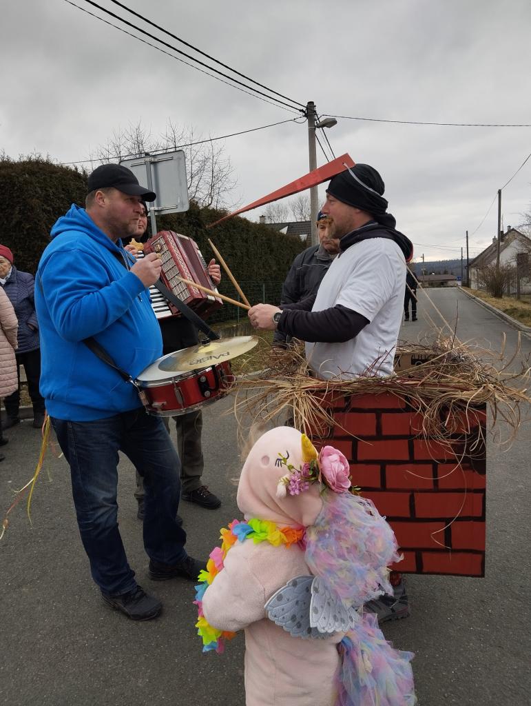 Tradiční masopustní průvod prošel vesnicí v sobotu 1.března. Sice se sešlo z důvodu končících jarních prázdnin méně masek, kolem 18, ale náladu nám to nepokazilo. Průvod doprovodila živá kapela, která poté hrála i v místním hostinci. K občerstvení byl připraven guláš.