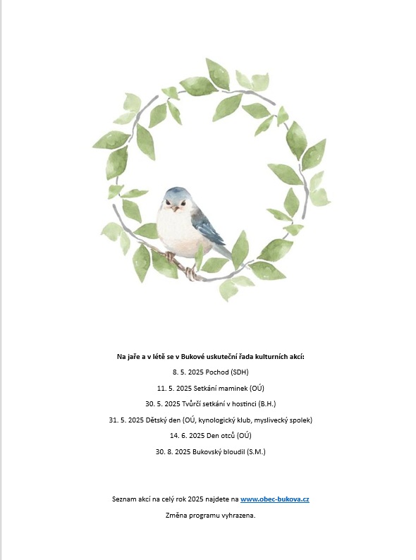 seznam akcí v Bukové